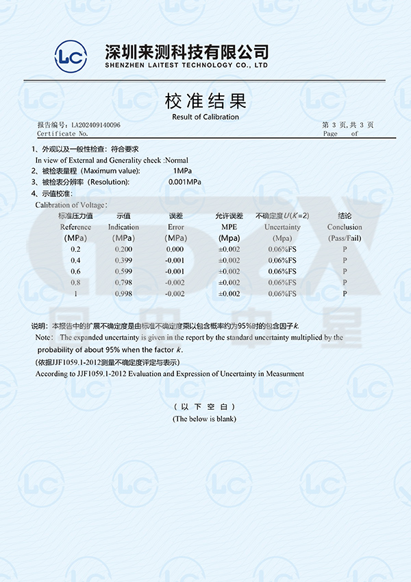 5. 壓力校驗范圍:0~1MPa