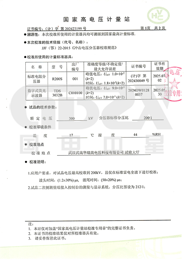 用于雷電沖擊電壓全波、截波和操作沖擊電壓波的沖擊電壓試驗
