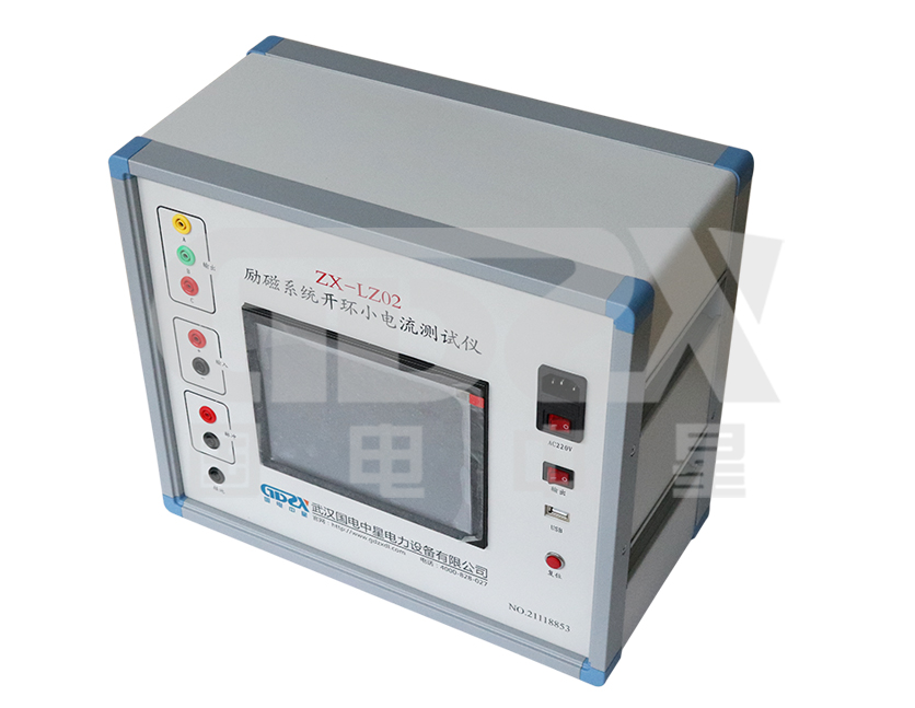 ZX-LZ02型勵磁系統(tǒng)開環(huán)小電流測試儀,由電源變換模塊、負載電阻和顯示存儲裝置組成,實現(xiàn)了勵磁系統(tǒng)開環(huán)測試的數(shù)字化、小型化、便攜化。