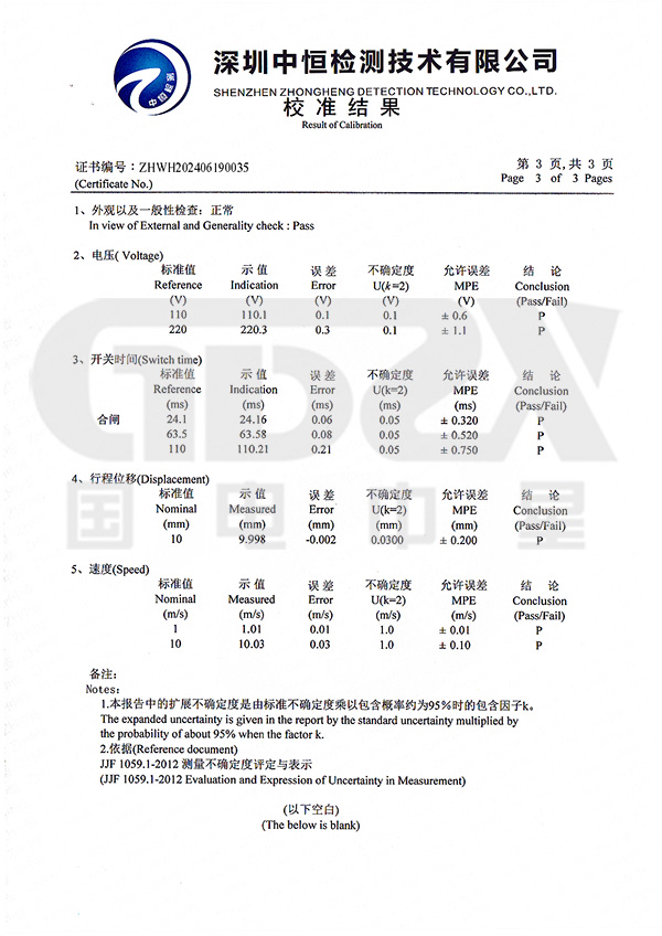 3/6路固有分閘(合閘)時間